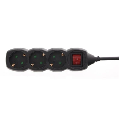 WELL Distribuție de alimentare 3, cu întrerupător, 3m, negru